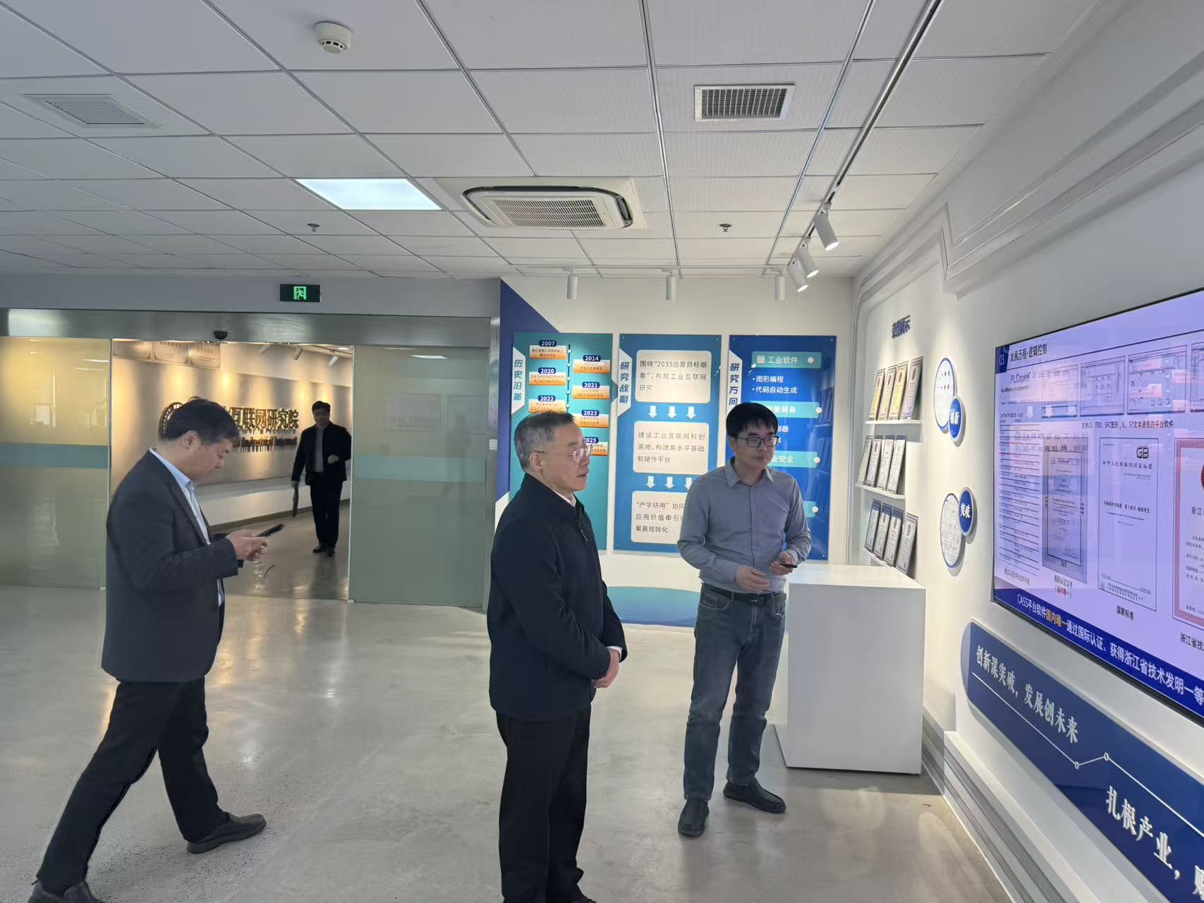 近日,嘉兴市人大常委会副主任一行莅临工业互联网研究院开展调研交流。研究院相关负责人热情接待了调研组,并全程陪同参观。